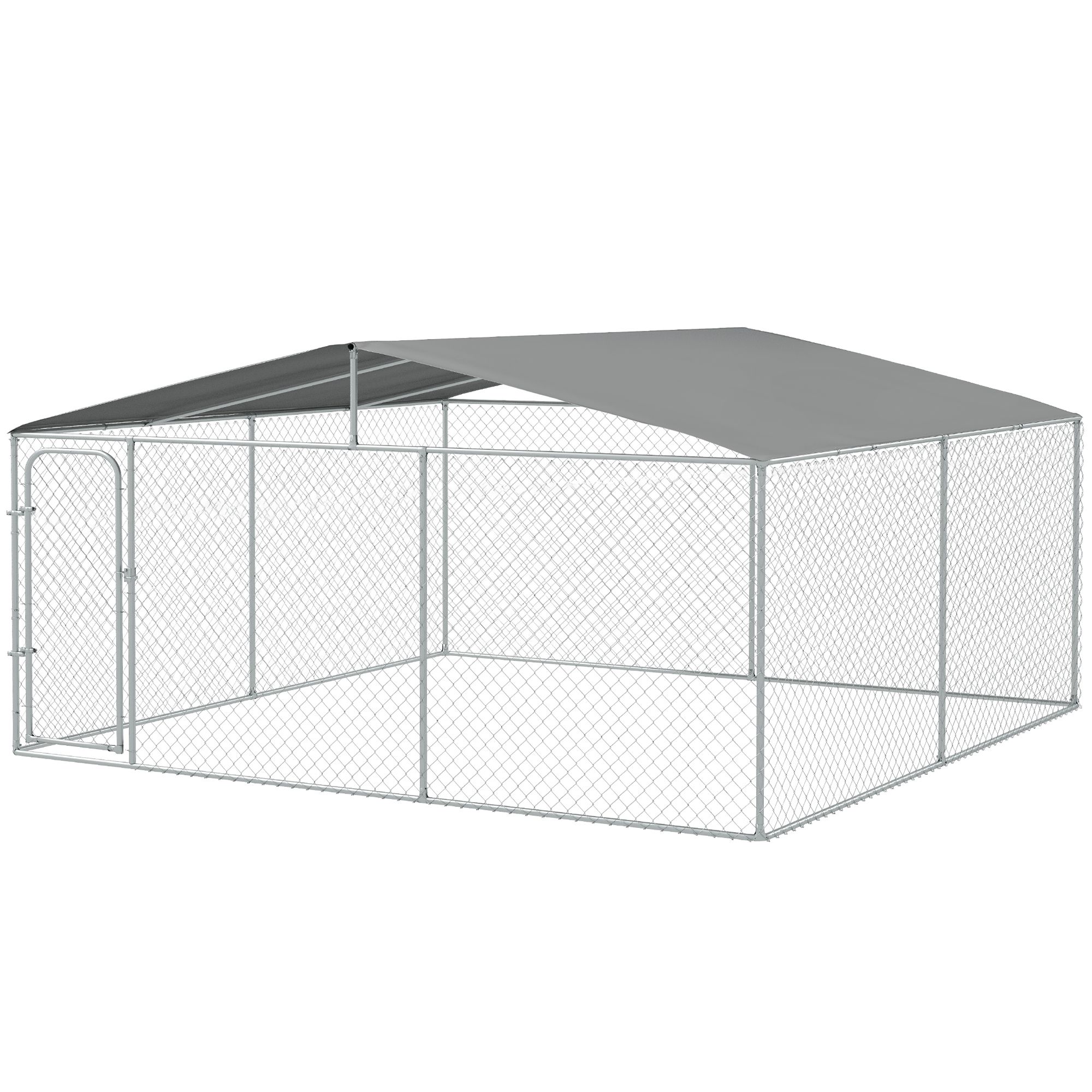 Outdoor Dog Kennel Galvanized Steel Fence with Cover Secure Lock Mesh Sidewalls for Backyard 15' x 15' x 7.5'